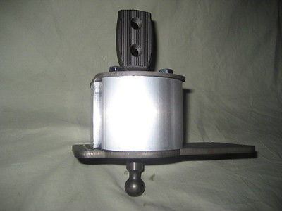 - Mounts at tail location on a rectangular 4-bolt pattern that is ~2.15" wide x 4.84" long; stub pivot ball center is ~1.1" below the flange